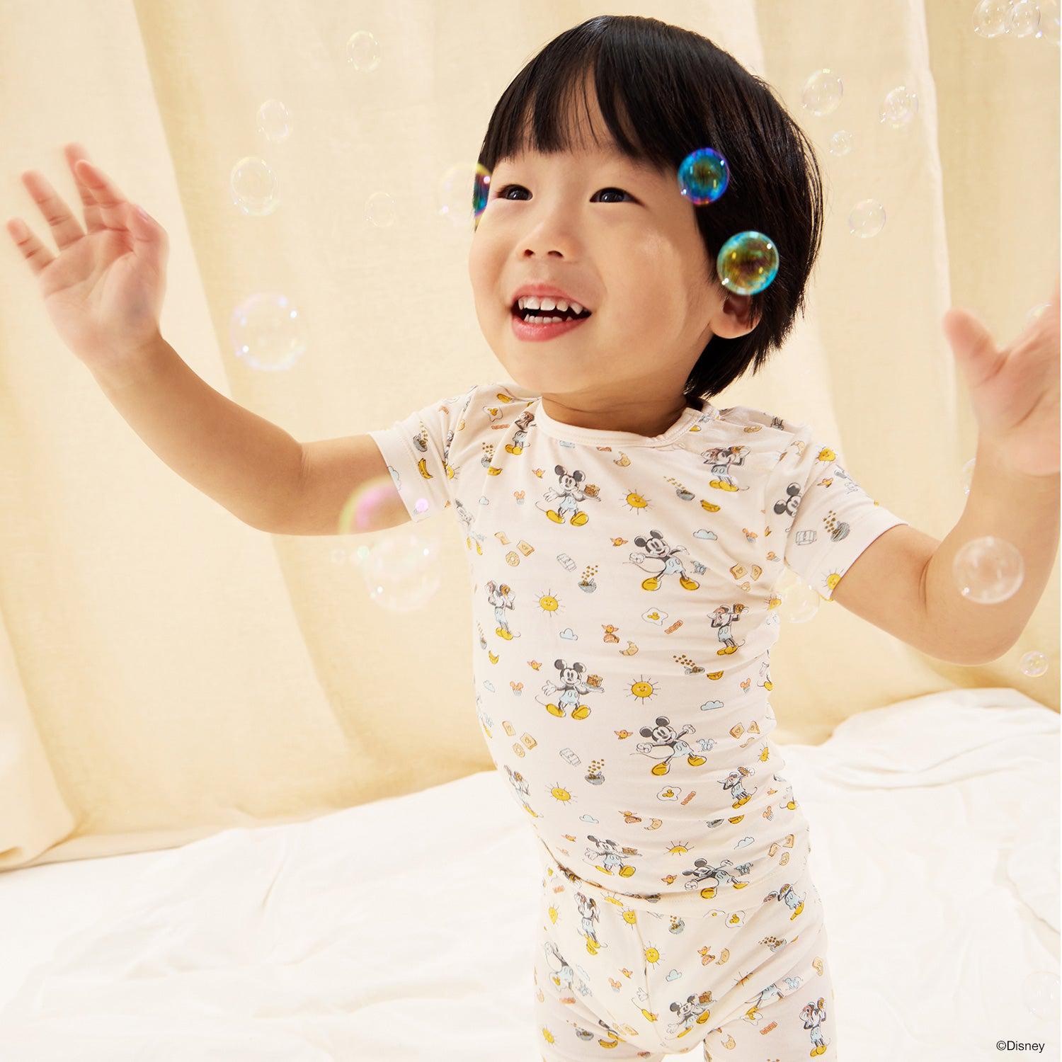 In this brunch club, you don't need a reservation—on the menu, Disney's Mickey Mouse eggs and toast and oh-so-soft magnetic pjs. the no drama pajama short sleeve set comes complete with magnets at the neck so kids can dress themselves before bed. (read: no over-the-head struggles.) eco-friendly TENCEL™ modal fabric is soft on skin, breathable, and created with a snug fit.