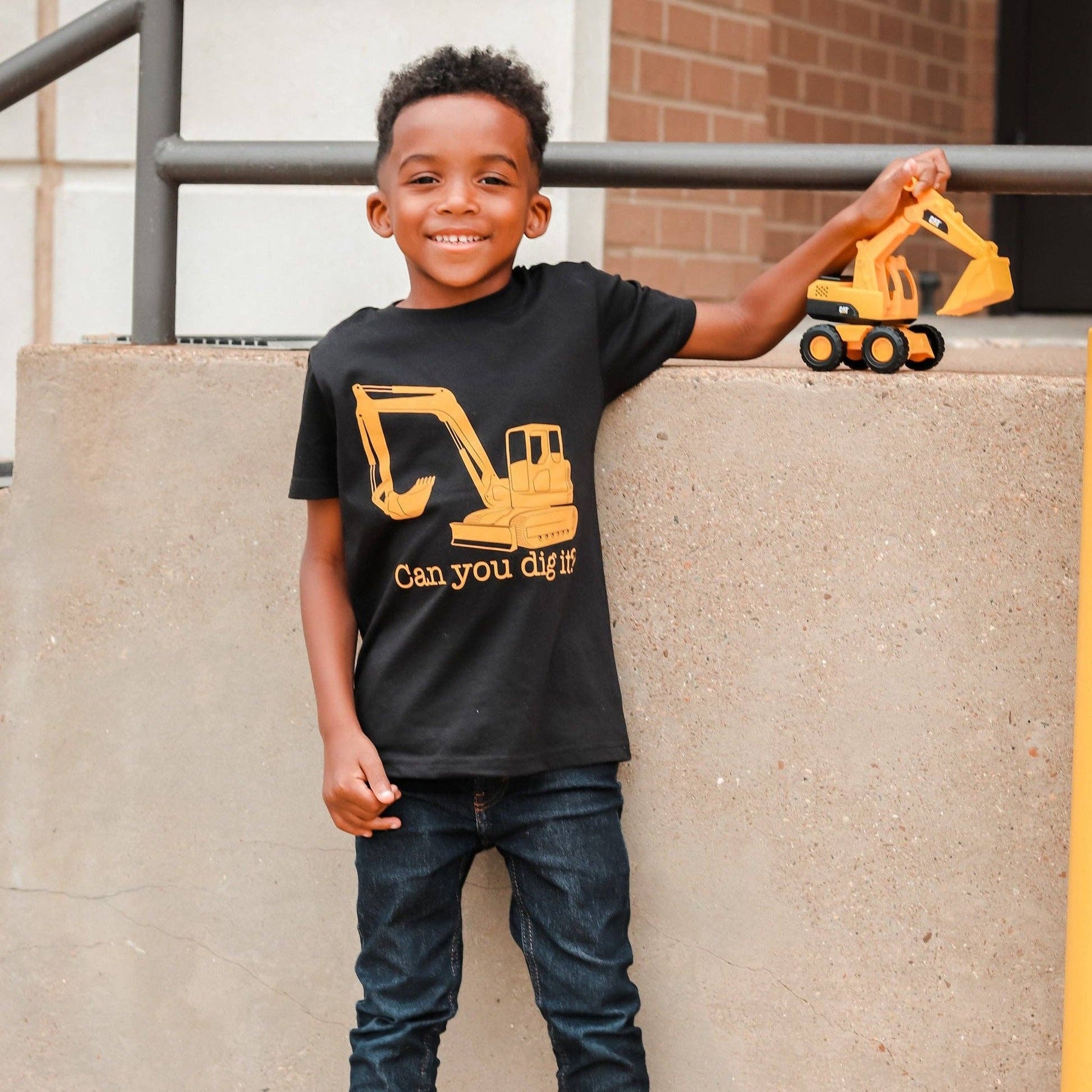 Can you dig it? We can dig it!!! This is the perfect addition to your construction lover's wardrobe! This would even be perfect for a construction themed birthday party! Handmade on a super soft black tee with yellow screen print