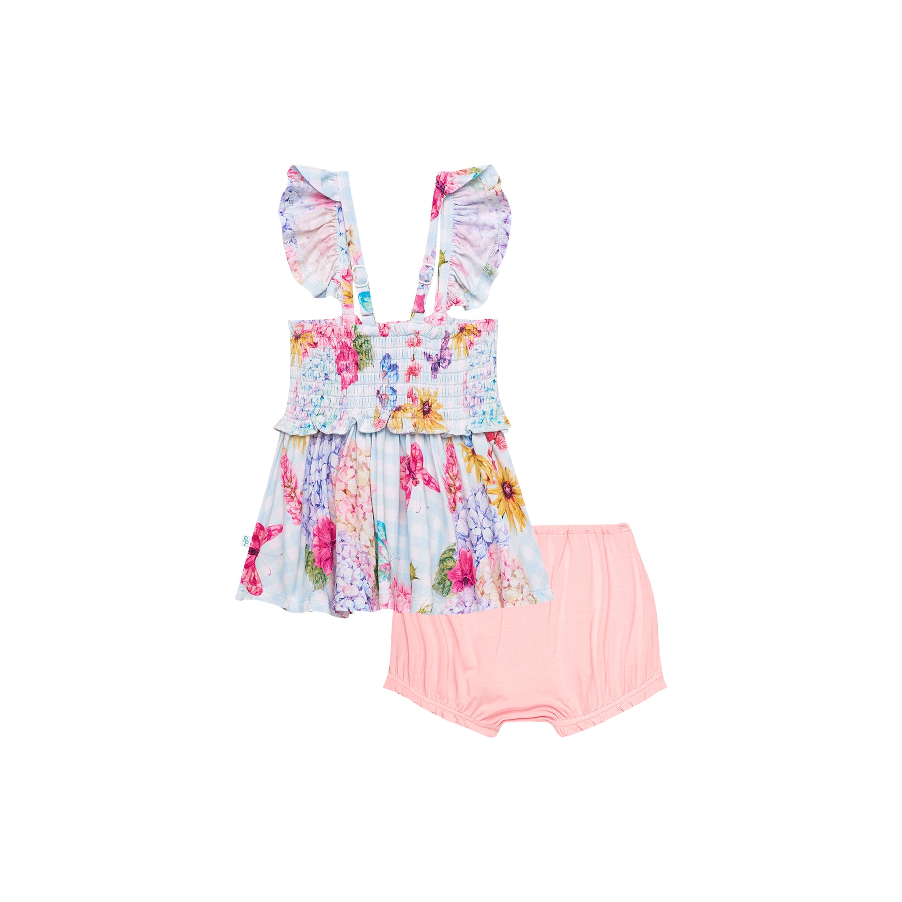 Posh Peanut Nicolette Smocked Flutter Sleeve Babydoll & Bloomer Set
