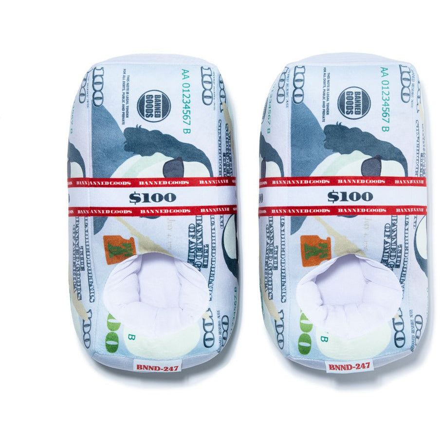 Just like all the Banned Goods slippers, our money slippers™ are the quality house shoes our customers can’t get enough of! Made from the softest, bounciest plush, they provide a big, warm hug for your feet. All our products are one-size-fits-most, fitting US sizes 4-13. Check out our size guide for more information!