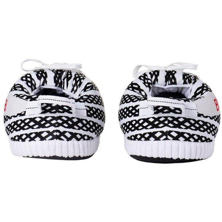 Earn your stripes as a true sneaker lover with the ZBRA™ house shoes from Banned Goods. The black and white stripe zebra design boosts these oversized plush slippers to the top of every sneakerhead’s wishlist, and gives your feet ultimate comfort and style.