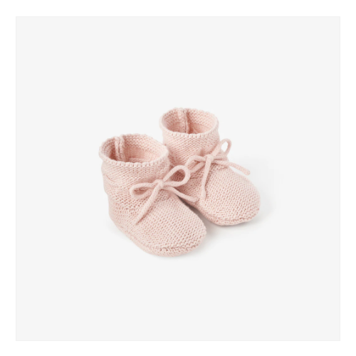 These comfortable hand-crocheted booties are the perfect, soft-sided shoe for every little one's tiny toes. The soft knitting feels dreamy on those sensitive baby feet. These adorable, cotton garter knit booties blend fashion and comfort for every little adventurer. 100% cotton. Hand crocheted. Fits 0-6 months. Adjustable drawstring bow. Damp wipe to clean.