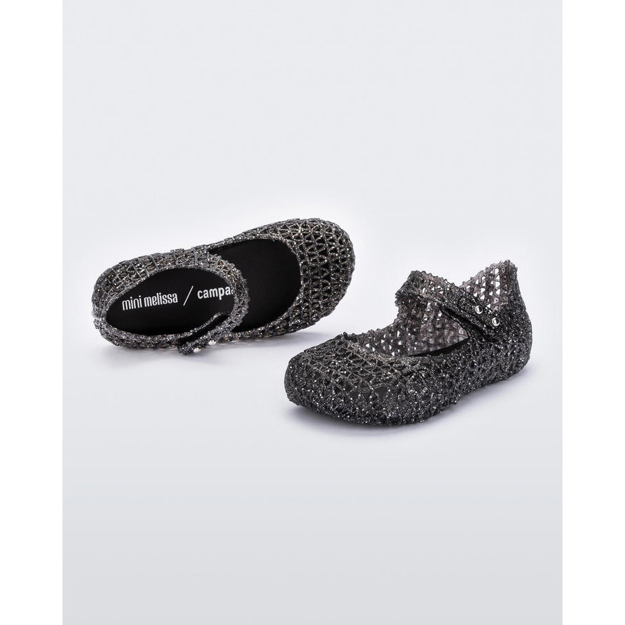 mini melissa Girl's Campana Papel BB (Toddler/Little Kid), Black Glitter