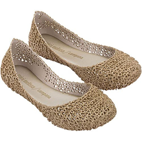 mini melissa Girl's Campana Papel, White/Gold Glitter