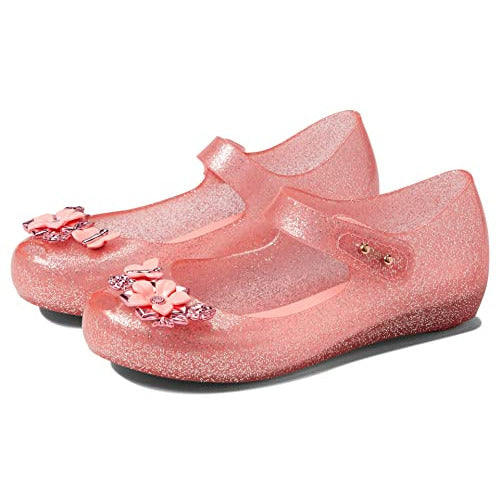 mini melissa Girl's Ultra Chrome Flower BB - Pink Clear Glitter