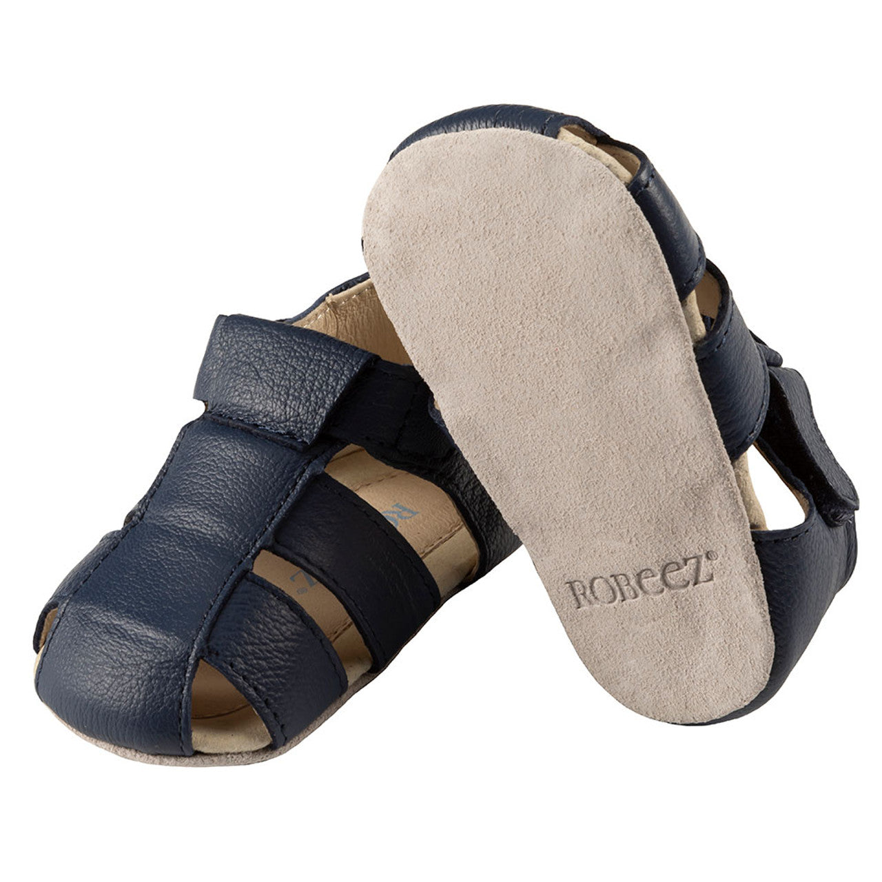 The Matthew Sandals in Navy Blue are baby sandals designed for both style and natural foot development. Created in a timeless fisherman sandal silhouette with a supportive rubber and suede sole, this sandal is your little one's new essential for learning to walk in the warm weather. Between the cushioned footbed and soft, leather straps, they’re also the most comfortable to wear.