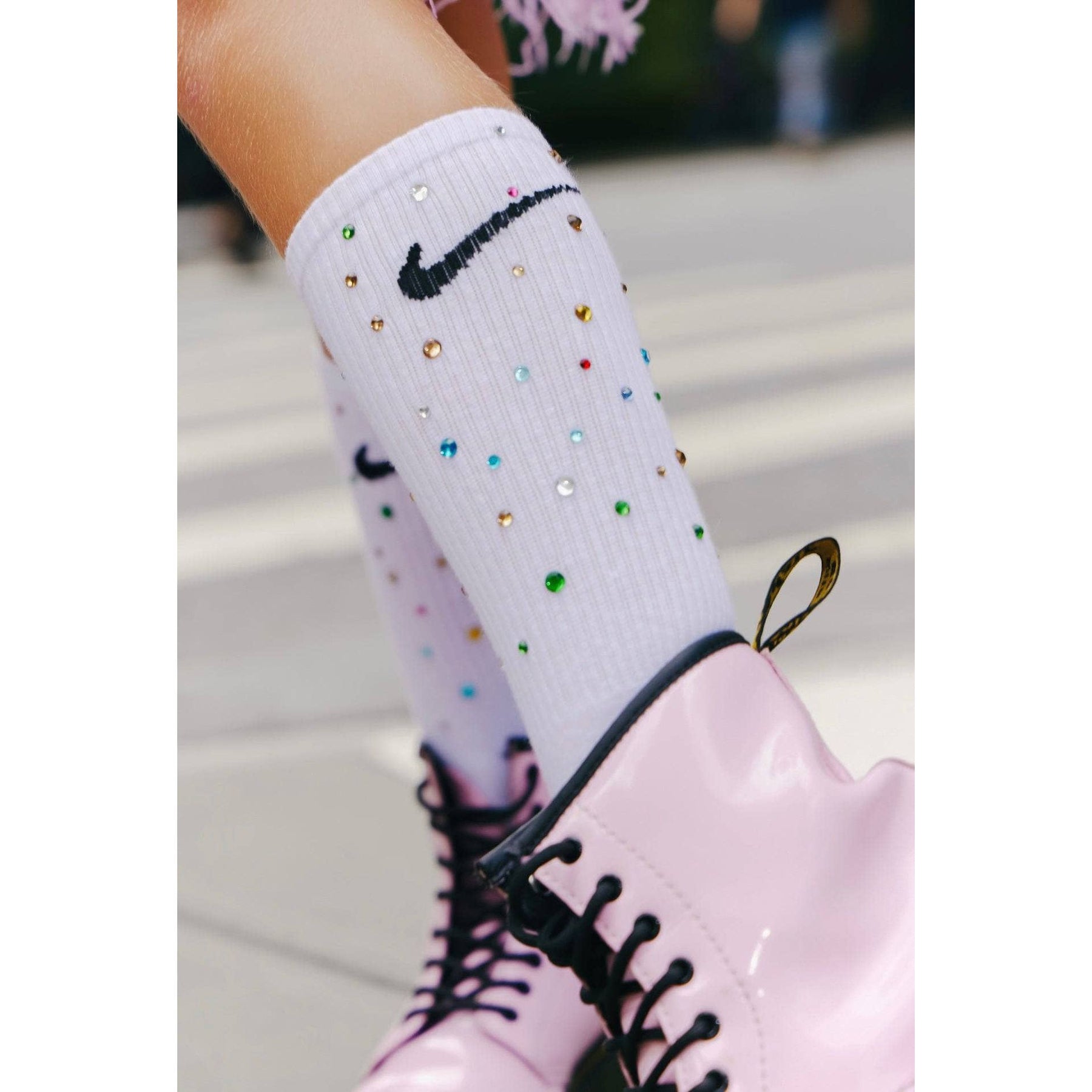 These high-performance athletic socks feature colorful, carefully placed gems that create a fun and eye-catching look.