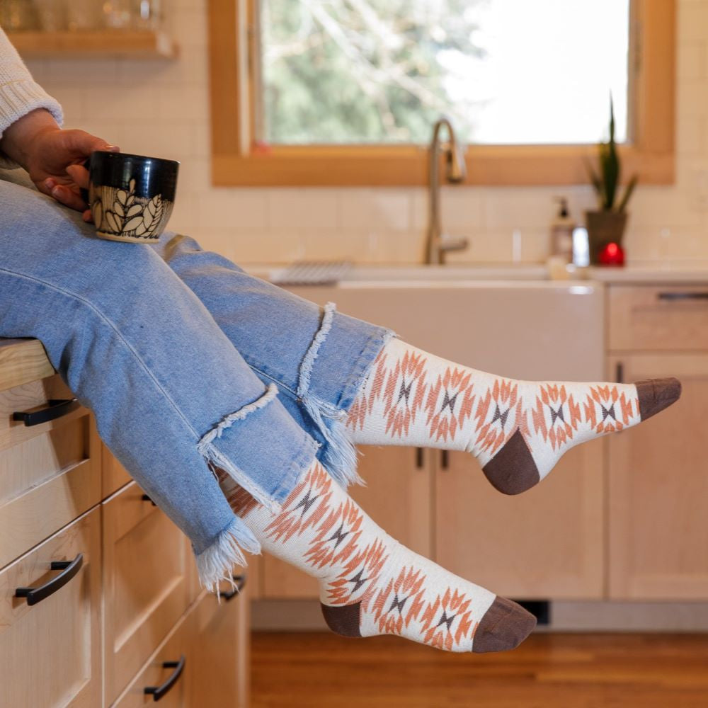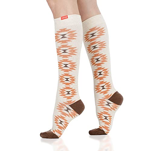 VIM&VIGR Cotton 15-20 mmHg Graduated Compression Socks (Oat & Orange Sedona Sunburst)
