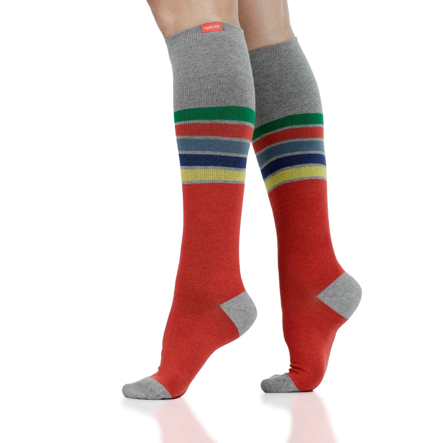 VIM&VIGR Cotton 15-20 mmHg Graduated Compression Socks (Primary Varsity Stripe)