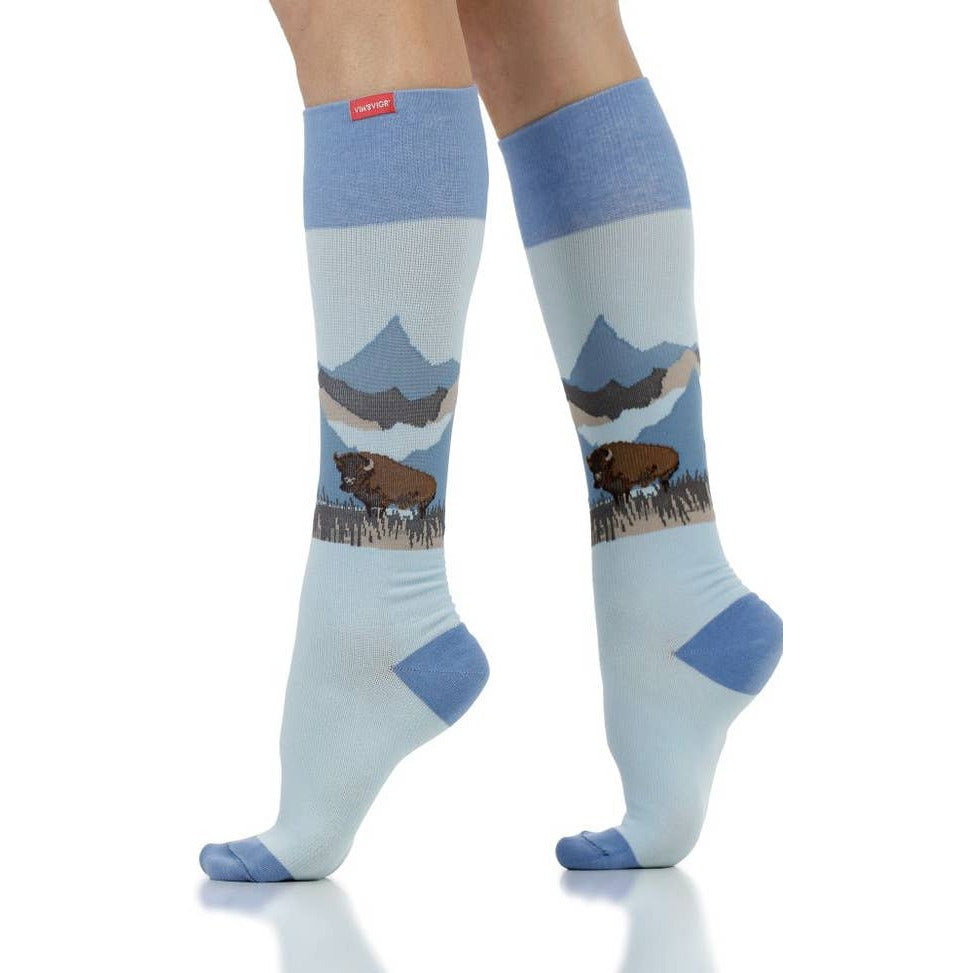 VIM & VIGR Cotton 20-30 mmHg Graduated Compression Socks (Light Blue Bison)