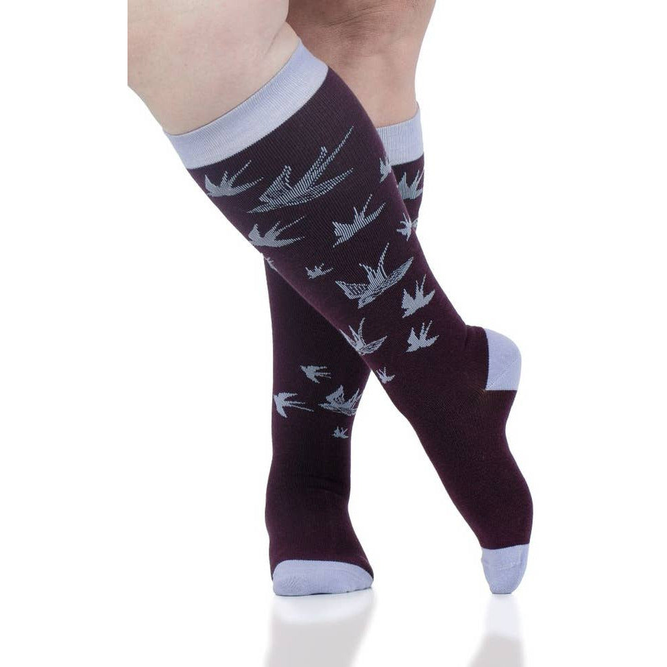 VIM & VIGR Cotton 20-30 mmHg Graduated Compression Socks (Plum & Lavender Birds)