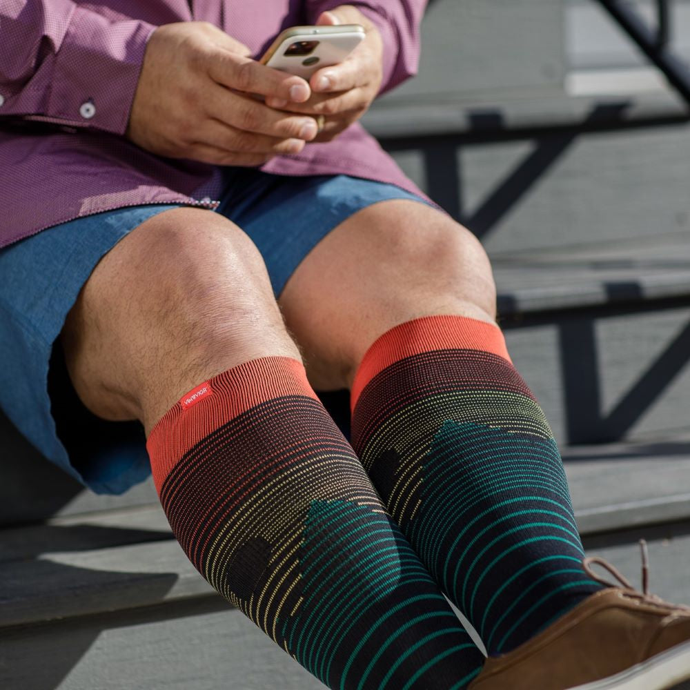 All new! This spin on our classic Nylon eliminates the toe seam in the toe box of the sock, creating a “seamless” feel, much like our Cotton and Merino Wool Compression Socks. Made with high-quality fabrics and 200-needle count for comfort and style. This different knit provides a softer feel while still utilizing our custom Nylon Blend. Our socks offer mild-moderate compression (15-20 mmHg) - appropriate for all day, everyday wear. This design also comes in 20-30 mmHg.