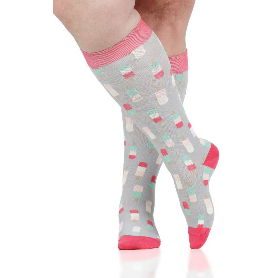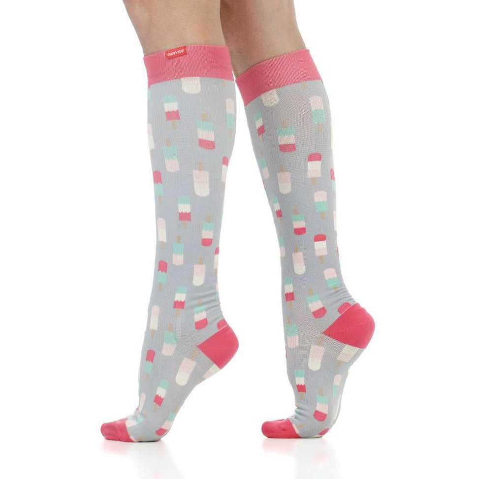 VIM & VIGR Nylon 20-30 mmHg Graduated Compression Socks (Grey & Strawberry Fruit Pops)