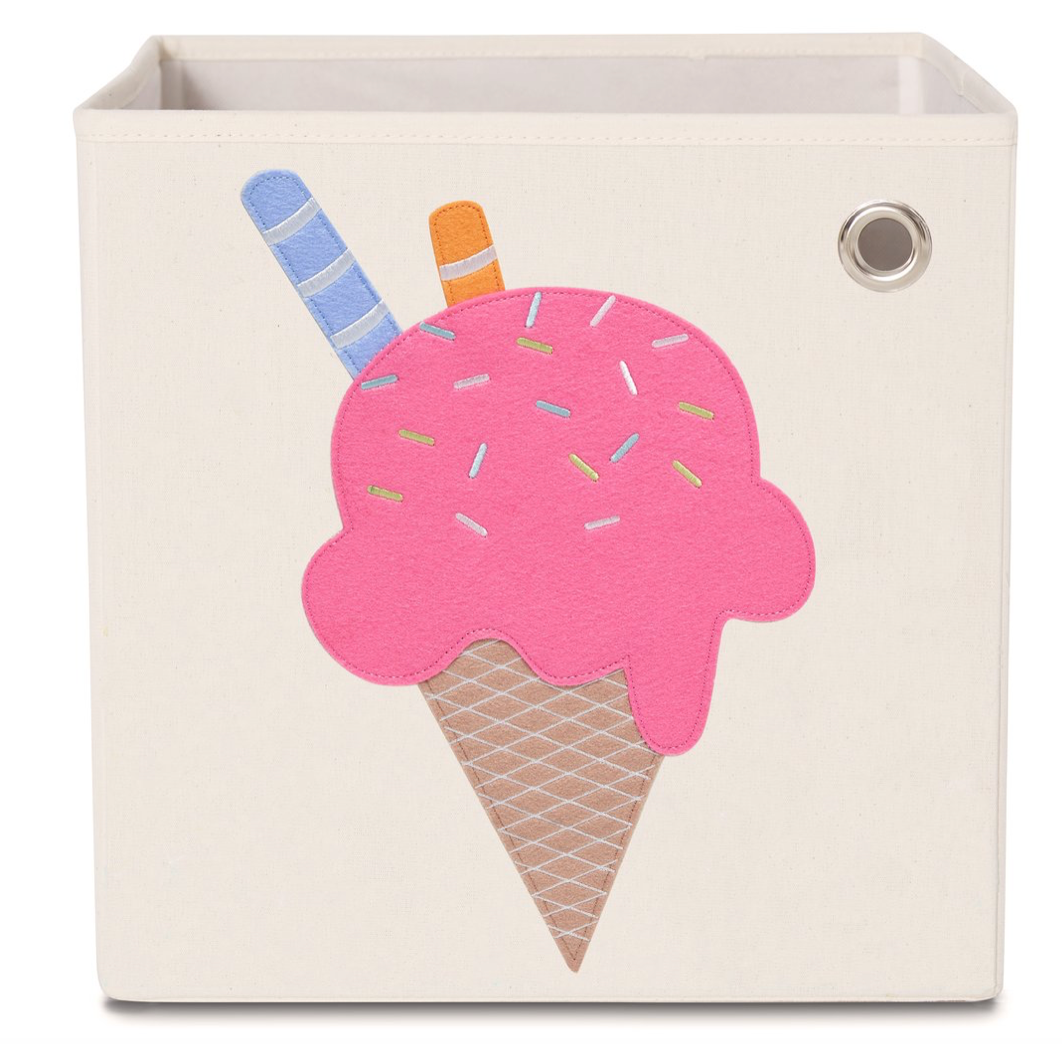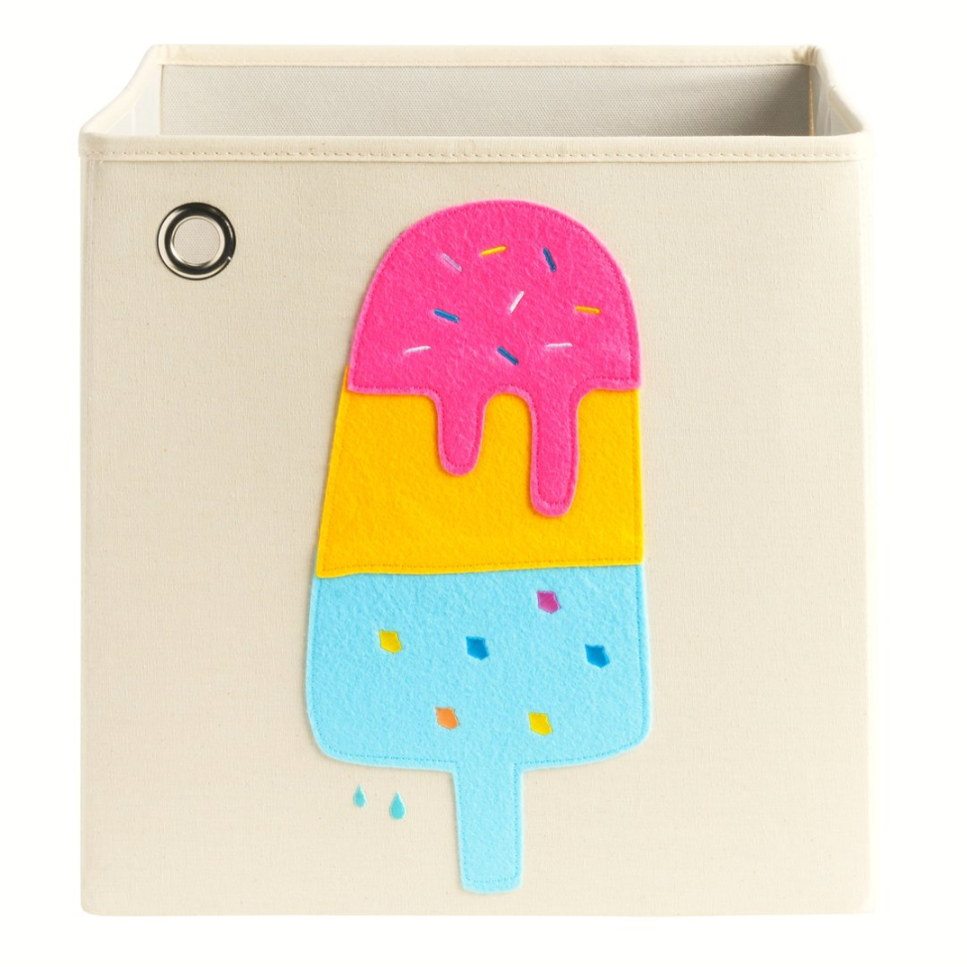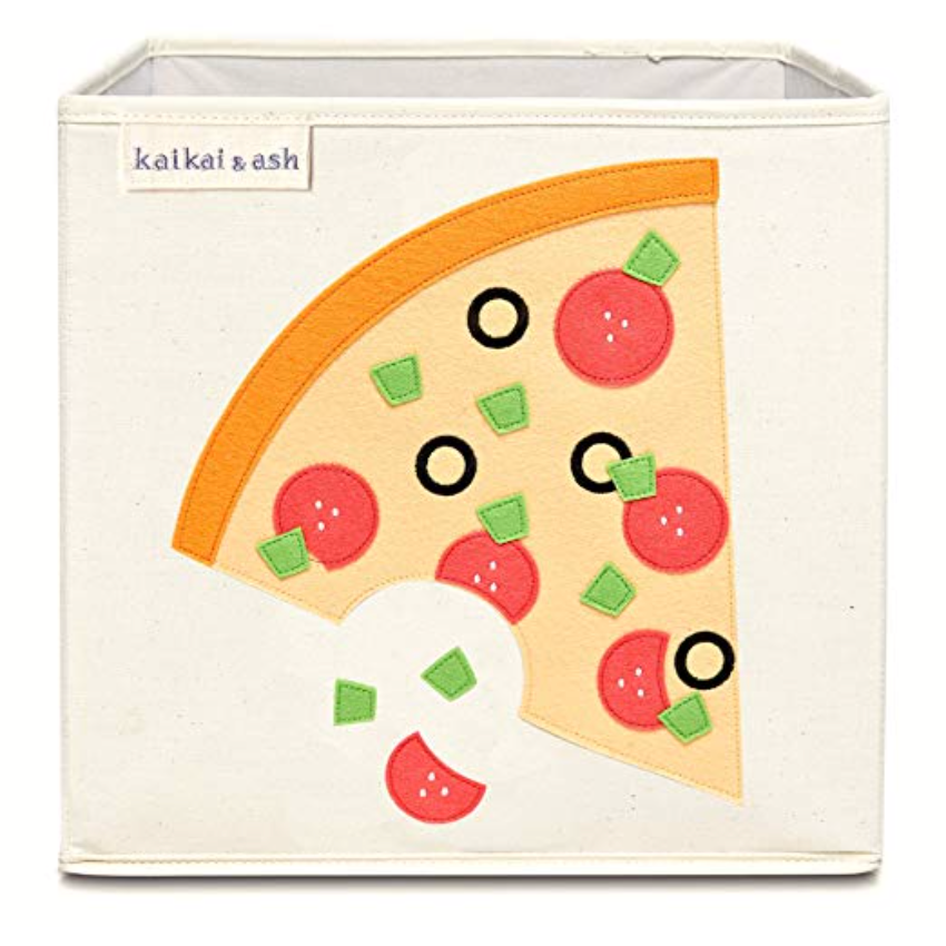 It's fun to tidy up with the cute and colorful Kid's Canvas Storage Bin from kaikai & ash. Decorated with felt appliques, it features built-in metal rings for pull-out ease, and folds flat when not in use. Perfect on a shelf, floor, or in the car.