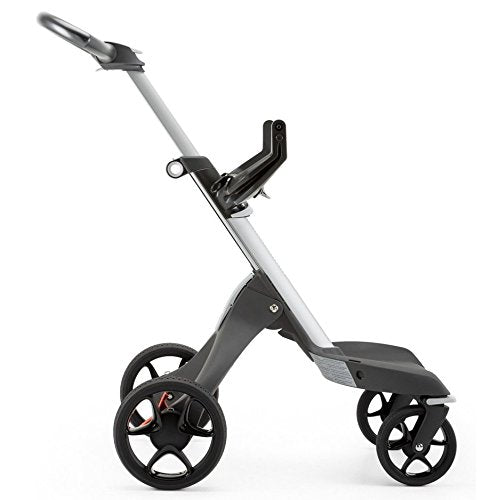 No stroller in its class matches smooth ride or innovation of Stokke Xplory. Our iconic stroller is height adjustable, raising your child higher to promote interaction and eye contact while you explore the world together. Front or rear facing with a five point safety harness, adjustable footrest and handle, Stokke Xplory provides an almost endless choice of seating positions to adapt to you and your baby's ever-changing needs. The unrivaled height of the Stokke Xplory brings you and your baby closer. No matter where you're going, you and your baby want to stay as close to each other as possible. The design of the Stokke Xplory stroller allows children and parents exceptional bonding even while scooting around town together.There are 3 parent facing positions: sleep, rest and active, and 2 forward facing positions: rest and active. At Stokke we believe that physical contact creates emotional contact and strengthens emotional ties. Eye contact not only creates a feeling of safety but increases the connection between parent and child. The Stokke Xplory stroller is part of the flexible Stokke stroller system with a lot of features and a wide color and accessories range. Ergonomic height and angle adjustable handle provide a wide range of positions. Two-wheel function makes it easy to stroll on rough and uneven surfaces (on the beach, on pebbles etc.). Easy swivel front wheels make it easy to maneuver in tight spaces, and the open design with space between the wheels and no crossbar doesn't restrict the way you walk. The taller height seat fits all table heights in cafés/restaurants. Soft padded seat, depth adjustable baby pad and an extra cushion to fit even the smallest babies. The adjustable foot rest eliminates dangling feet and stimulates movement and variation whilst sitting.