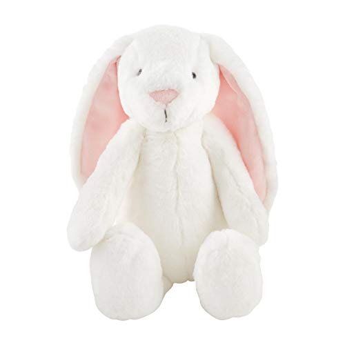 Your little one will adore this large or small plush pink bunny. The faux fur plush bunny features contrast flat minky nose and trim detail. The bunny has pink ears and nose. The bunny is super soft and made from polyester. The bunny would be great for a first Easter gift and also comes in a larger version.
