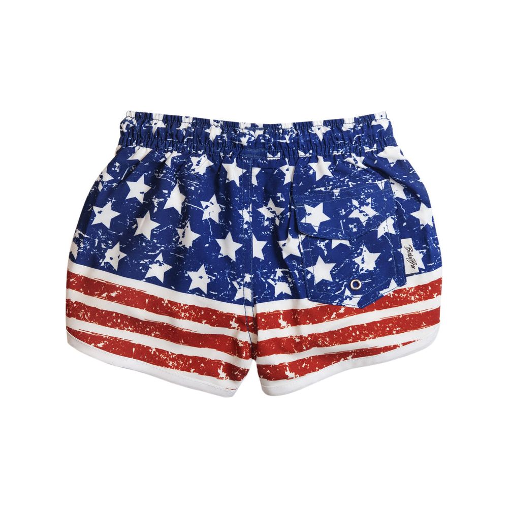 Our Swimmies are styled after a more euro-fit. Meaning, the length of the shorts will land anywhere between a little above the knee to mid-thigh-ish (depending on the length of the child). It is designed this way--its our style!