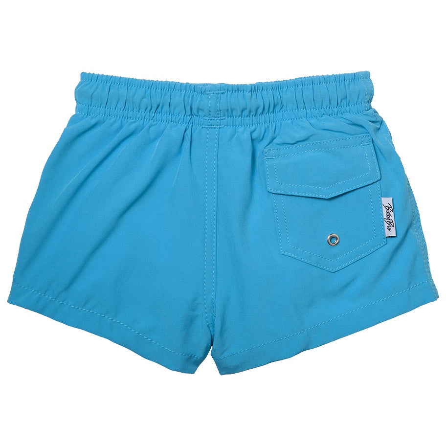 Our Swimmies are styled after a more euro-fit. Meaning, the length of the shorts will land anywhere between a little above the knee to mid-thigh-ish (depending on the length of the child). It is designed this way--its our style!