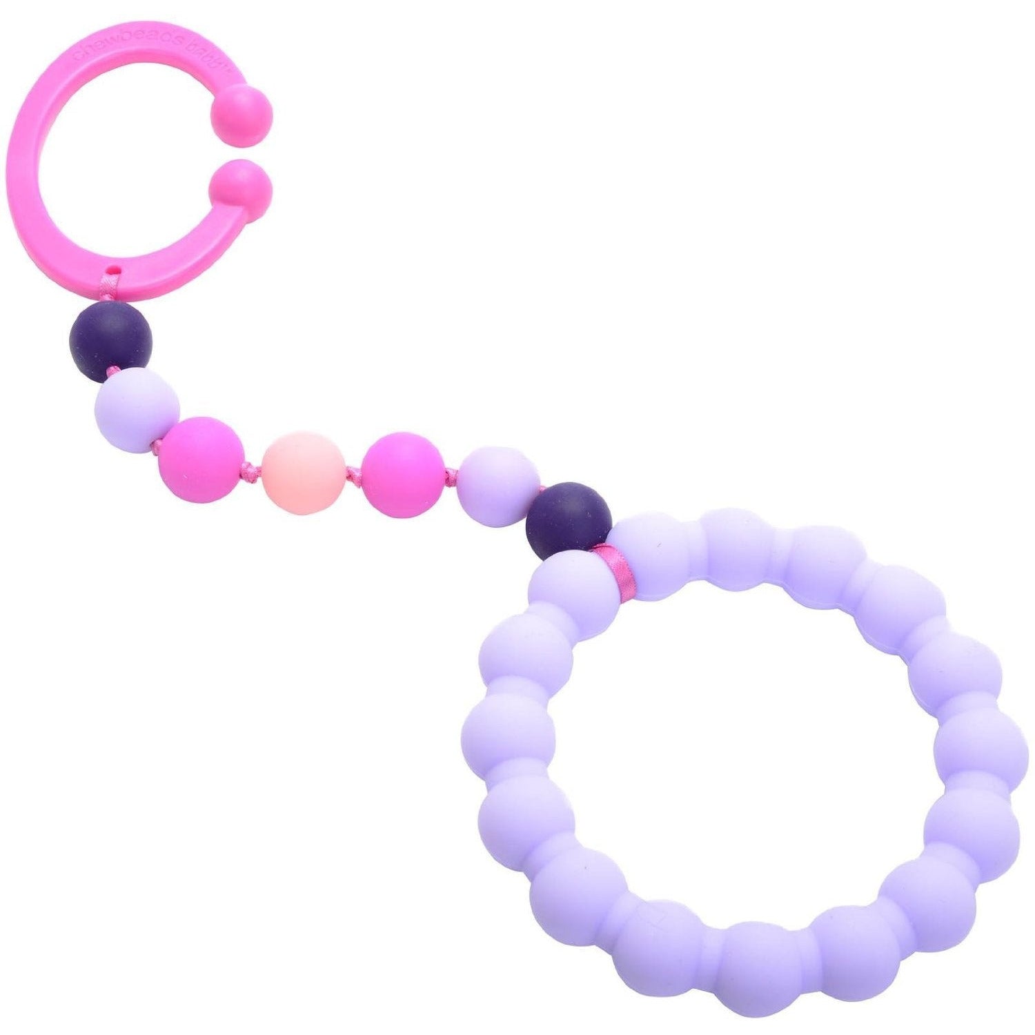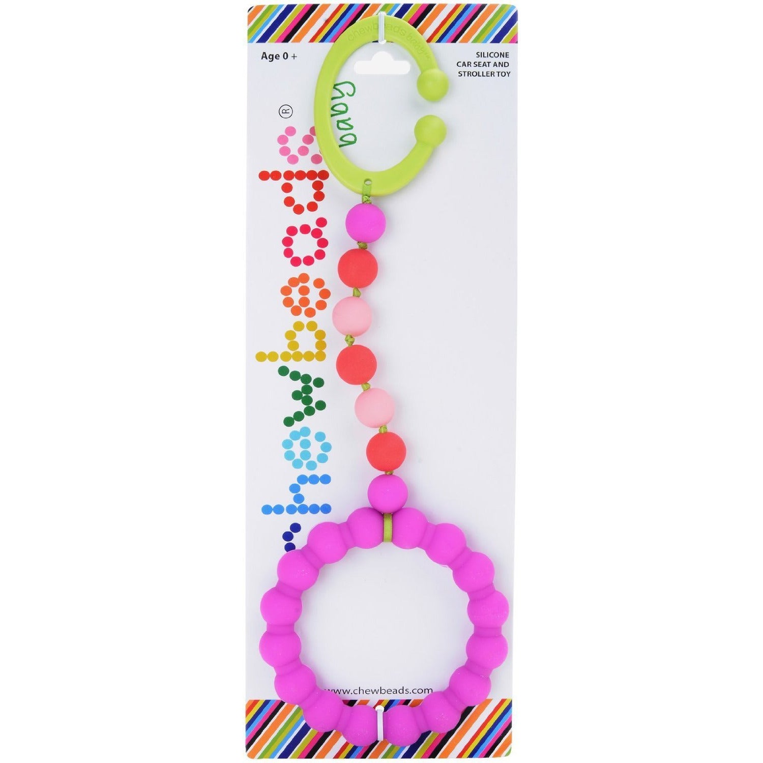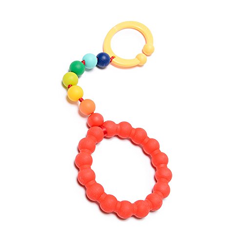 100% silicone baby car seat toy and stroller toy attachment. Soft and flexible design adds a great distraction for curious babies who like to touch, tug, and chew on the go.