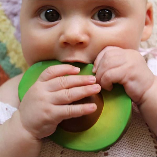 A realistic avocado toy made from natural Hevea-tree rubber with hand-painted details is a must-have for teething, bath time and tactile play.
