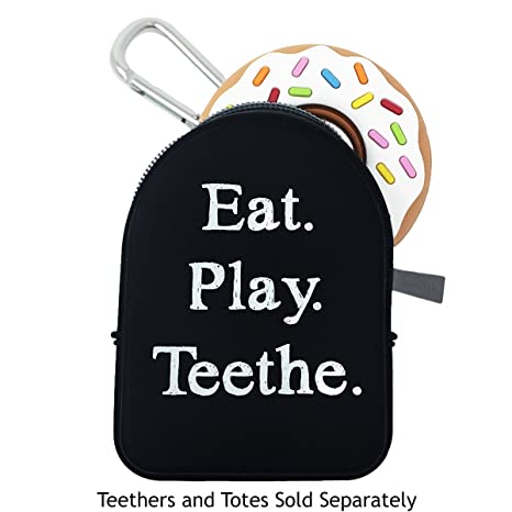 Each of our Teether Tots are made with a zipper and have a carabiner clip that attaches easily to any key chain and mini teethers. The Teether Tote is also great for storing snacks, money, or any other small items for on the go!