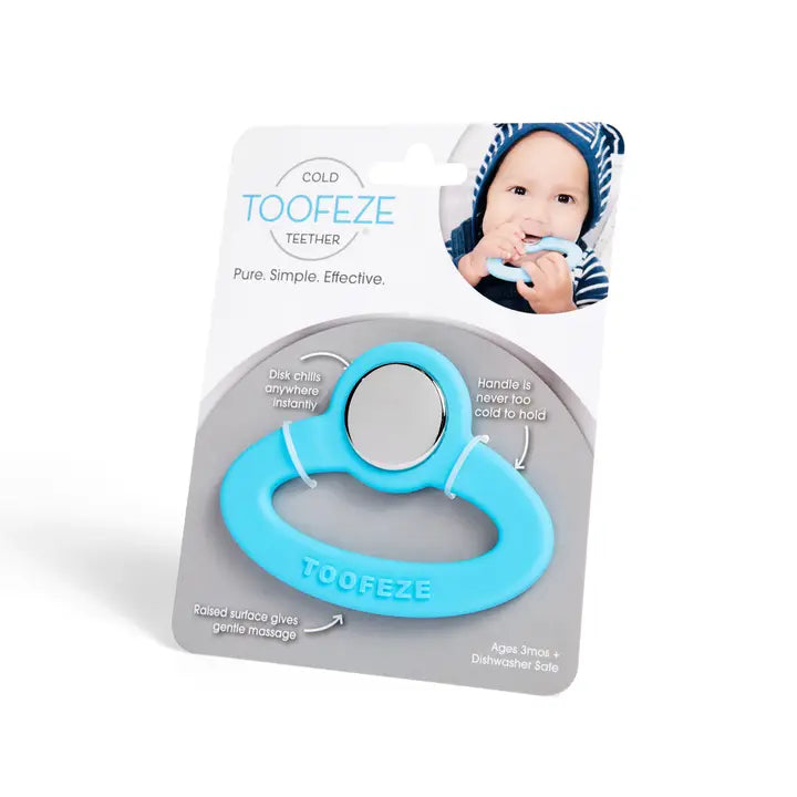Toofeze is a functional and durable all-natural alternative to traditional baby teethers. Its two distinct biting surfaces allow babies to self-manage their changing teething needs. The food grade ingredients are hypoallergenic and intentionally selected to meet the high standards of today's health- and eco-conscious consumers. Instructions: Cleanse thoroughly before first use! Toofeze is dishwasher safe. DO NOT FREEZE! DO NOT HEAT! Test Toofeze on your wrist as you would with formula or bath water. For Best Results At Home: Place in refrigerator (not freezer) til chilled Out and About: Dip disk in cold water til chilled In the Car: Hold in front of air conditioner vent til chilled Toofeze and its packaging are rigorously tested in the U.S. to ensure they meet or exceed all federal safety requirements, including Consumer Product Safety Commission standards, American Society for Testing and Materials regulations, and the most current Consumer Product Safety Improvement Act. -- Therapeutic - Cool stainless steel disk clinically reduces painful teething symptoms caused by swelling and inflammation. -- Convenient - Chills instantly in cold water - Perfect for out and about when a fridge isn't handy -- Ergonomic - Soft silicone handle and stationary design make it easy for babies to control - Aids in early motor skills development -- Sanitary - Easily cleaned with soap and water or antibacterial wipes - Durable enough to be boiled or run through the dishwasher as often as you like! -- Create your own lasting keepsake by taking your Toofeze to a local rotary engraver to have the stainless steel disk personalized.