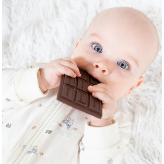 100% BPA free silicone Chocolate Bar teethers that babies really want to sink their teeth into.
