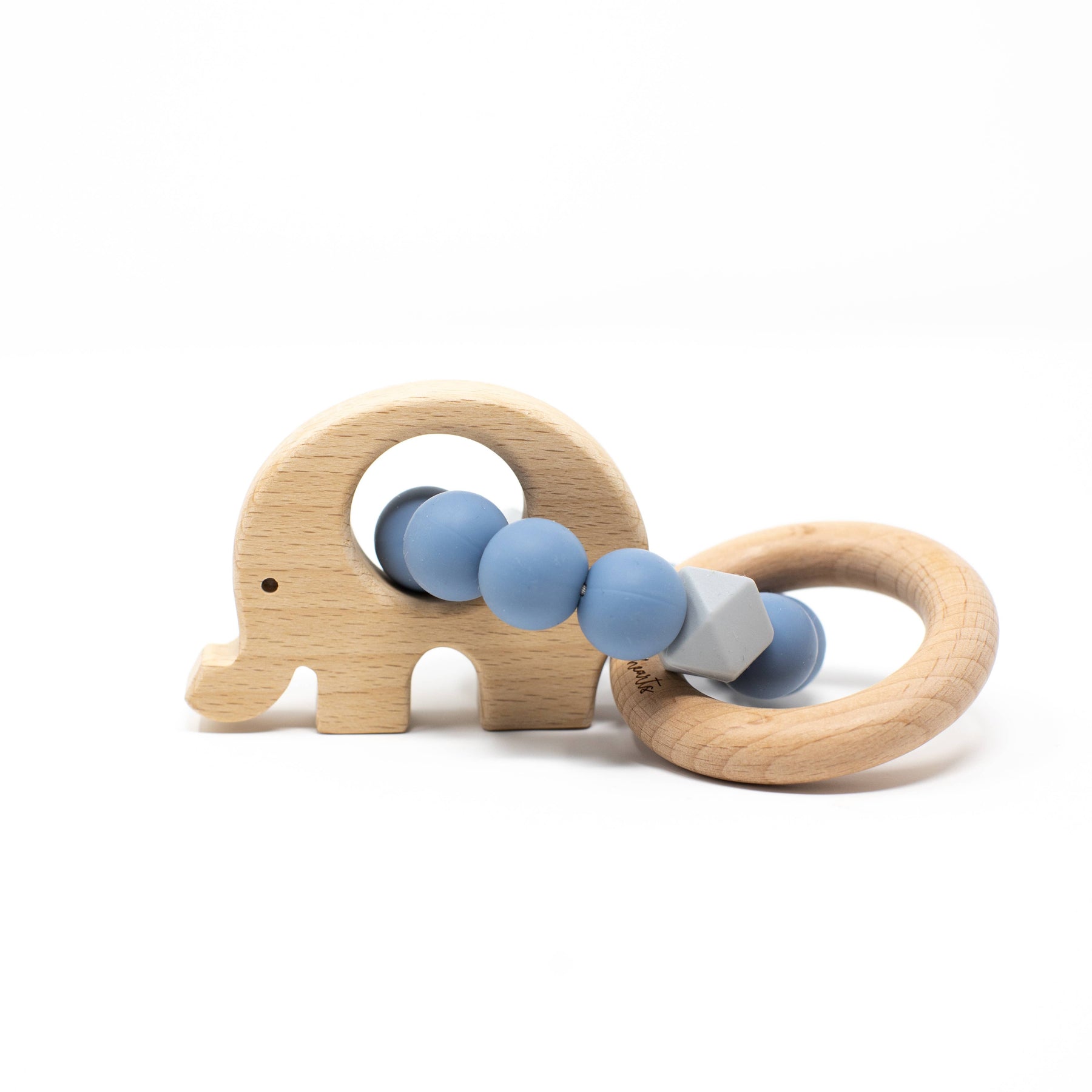 Elephants symbolizes luck. With the Elephant rattle BPA free silicone and all natural beech wood, you can show mom to be how much her journey into motherhood means to you with this thoughtful baby shower gift. This baby shower gift is not just rattle, but also doubles as a teether. These rattles are individually hand made in Houston, Texas. Custom colors are available with a 6 piece minimum. Please contact us prior to ordering for further ordering instructions.