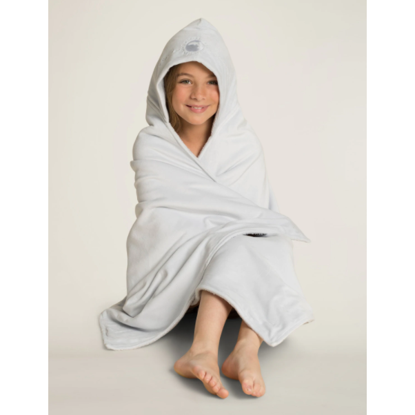 Soft and absorbent, this cotton towel has a velvet touch and embroidered detail. Perfect for wrapping up your little one after bathing or swimming.