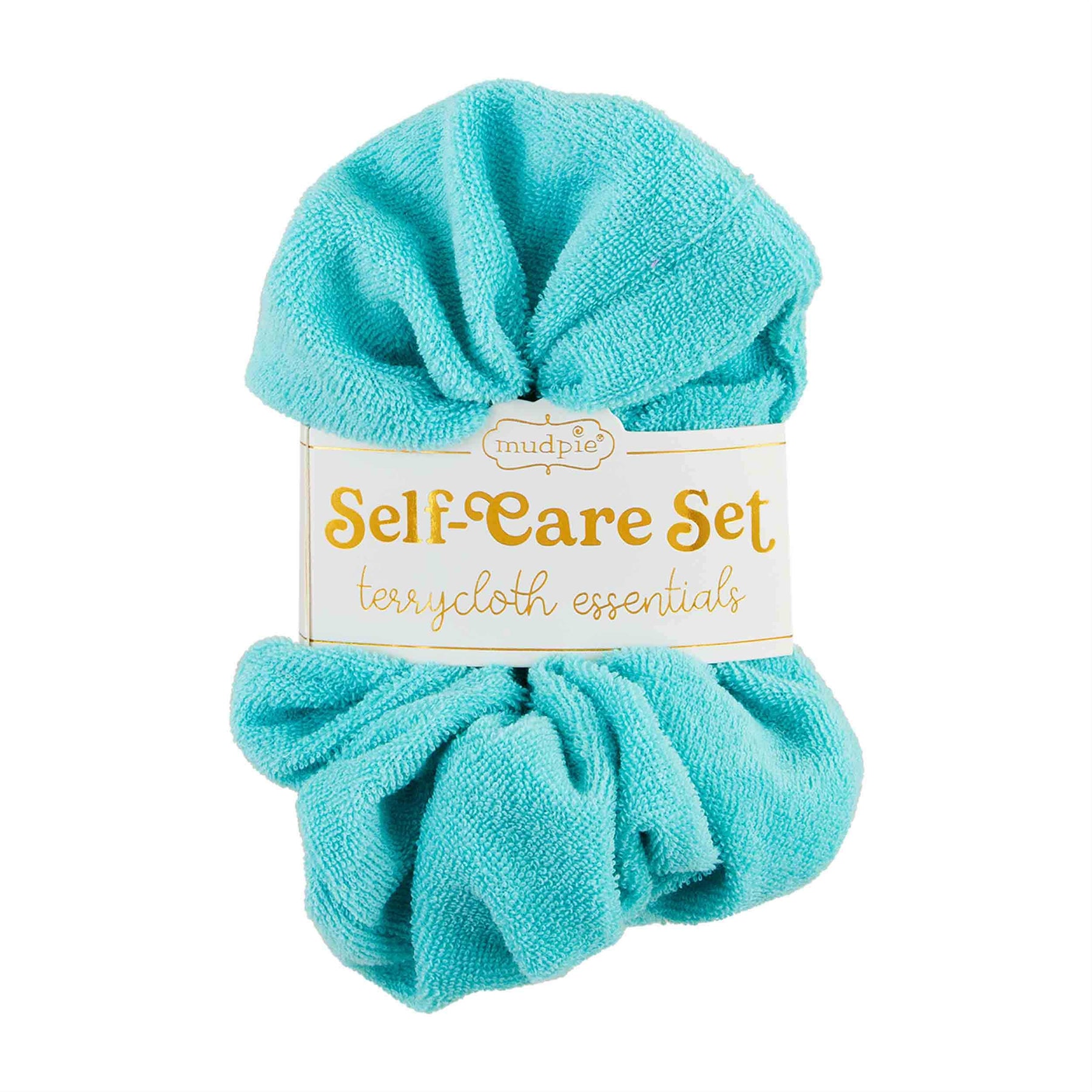 Our Blue Terrycloth Self Care Gift Set is the perfect item for gifting! The three piece terrycloth gift set comes with soft headband, a coordinating scrunchie and sleep mask. The set comes wrapped together, making it a great grab-and-go item for friends, co-workers or bridesmaids! This set can be machine washed on cold separately, gentle cycle. We recommend to tumble dry on low.