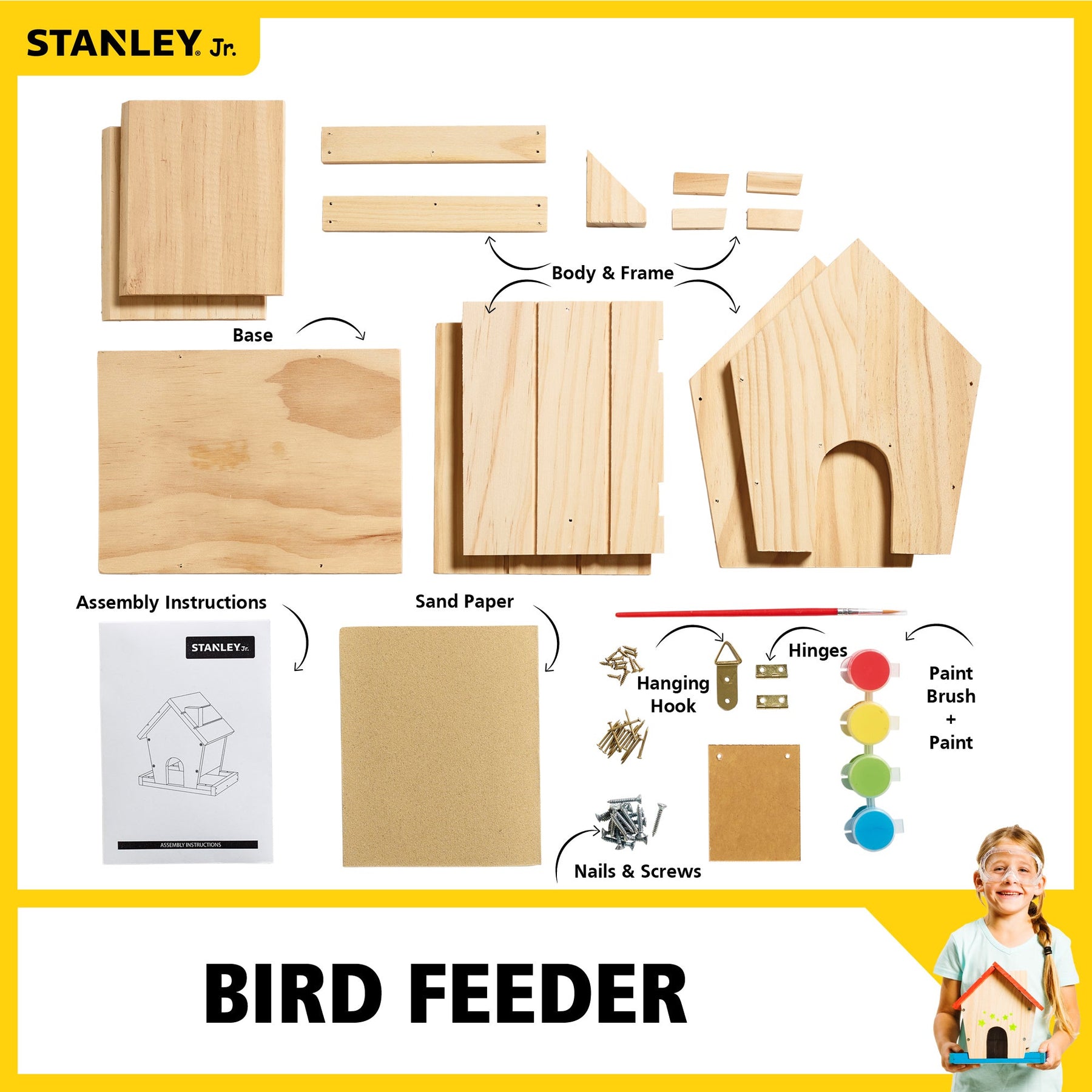 This engaging and educational ready-to-build Stanley Jr bird feeder kit set enables children to create a bird-friendly environment, then observe and learn about the birds who come to visit! After building and decorating, place the craft bird feeder in your garden and watch the birds flock to their new hang out spot.