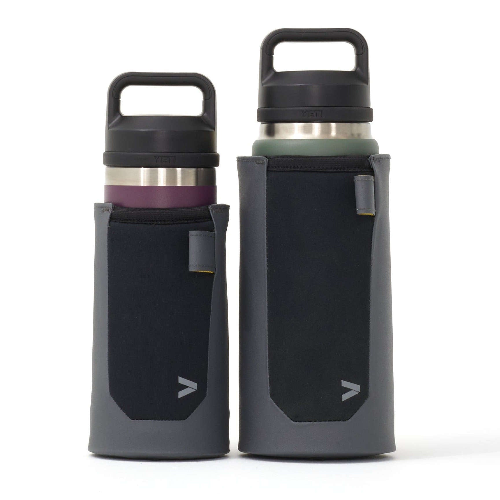 The Catch All is ideal for bottle sizes up to a Yeti 18oz Rambler and similar, and the Catch All XL is ideal for bottle sizes up to a Yeti 26oz Rambler and similar.