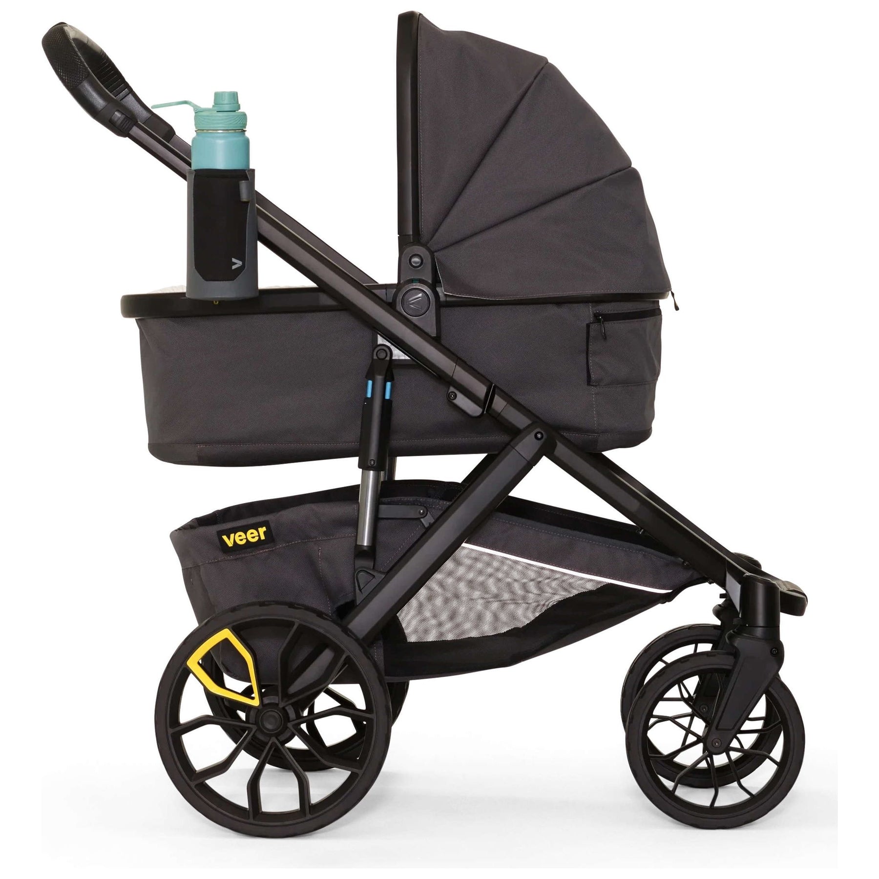 Keep your phone, keys, water bottle all within reach. The Catch All and Catch All XL can be secured to any Veer Cruiser, &Roll, and &Jog at any of the fixed attachment points. Additionally, the bottom of a Catch All's can be secured to a handle with an elastic loop to prevent swinging if desired. The product is constructed of durable tarpaulin and a neoprene-like material that give it water-resistant and insulating properties.