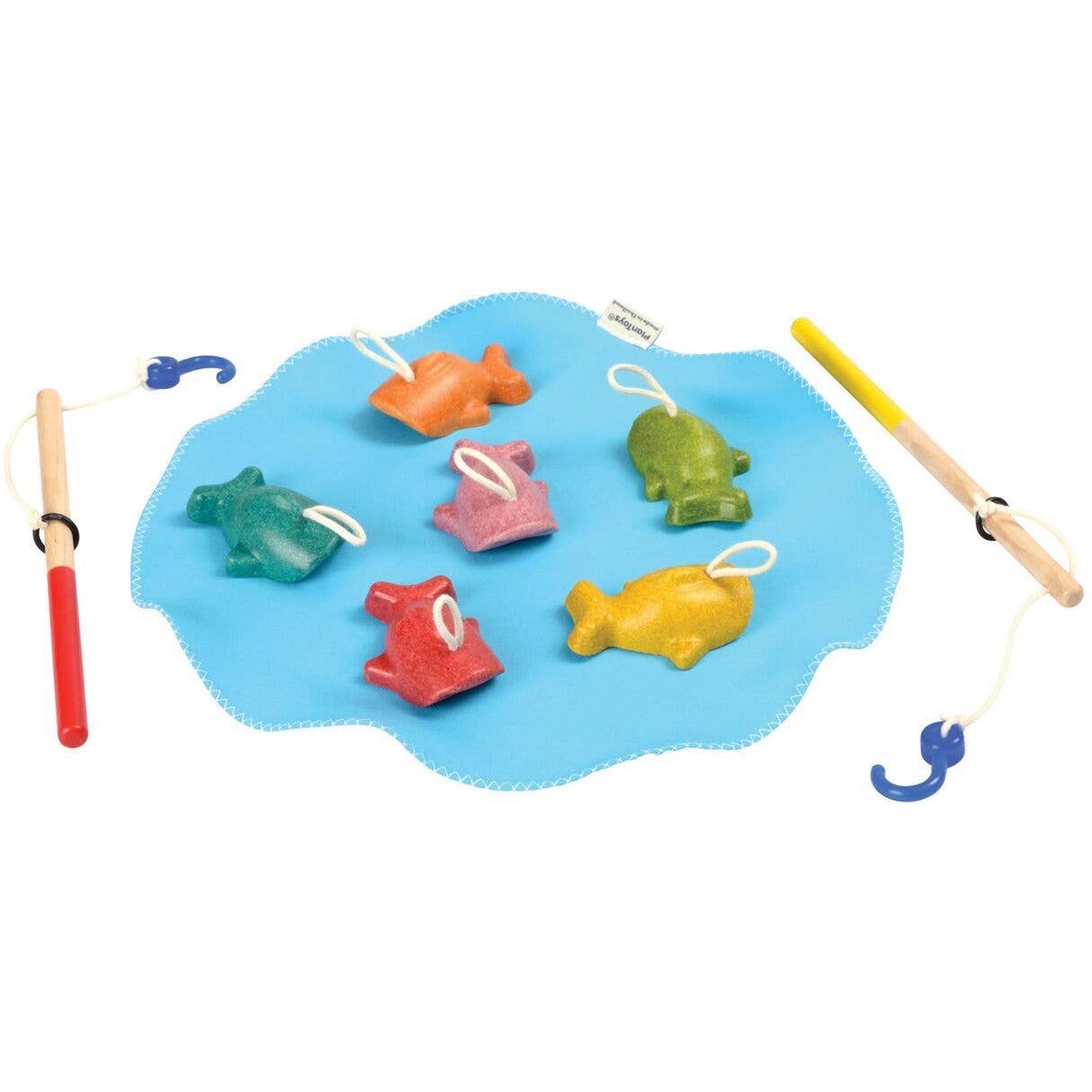 Gone fishin’! The set includes 6 colorful fish, pond-blue fabric, and 2 fishing rods. Rods can be adjusted from beginner to advanced level.