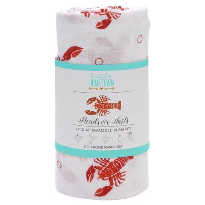 Little Hometown Heads and Tails Lobster Baby Muslin Swaddle Receiving Blanket