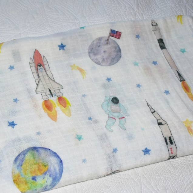 Ultra soft, versatile swaddle made of 70% bamboo and 30% cotton. Size is 47 inches x 47 inches. It can be used in a variety of ways. Swaddle blanket, changing mat, burp cloth, car seat cover, play mat or nursing cover.