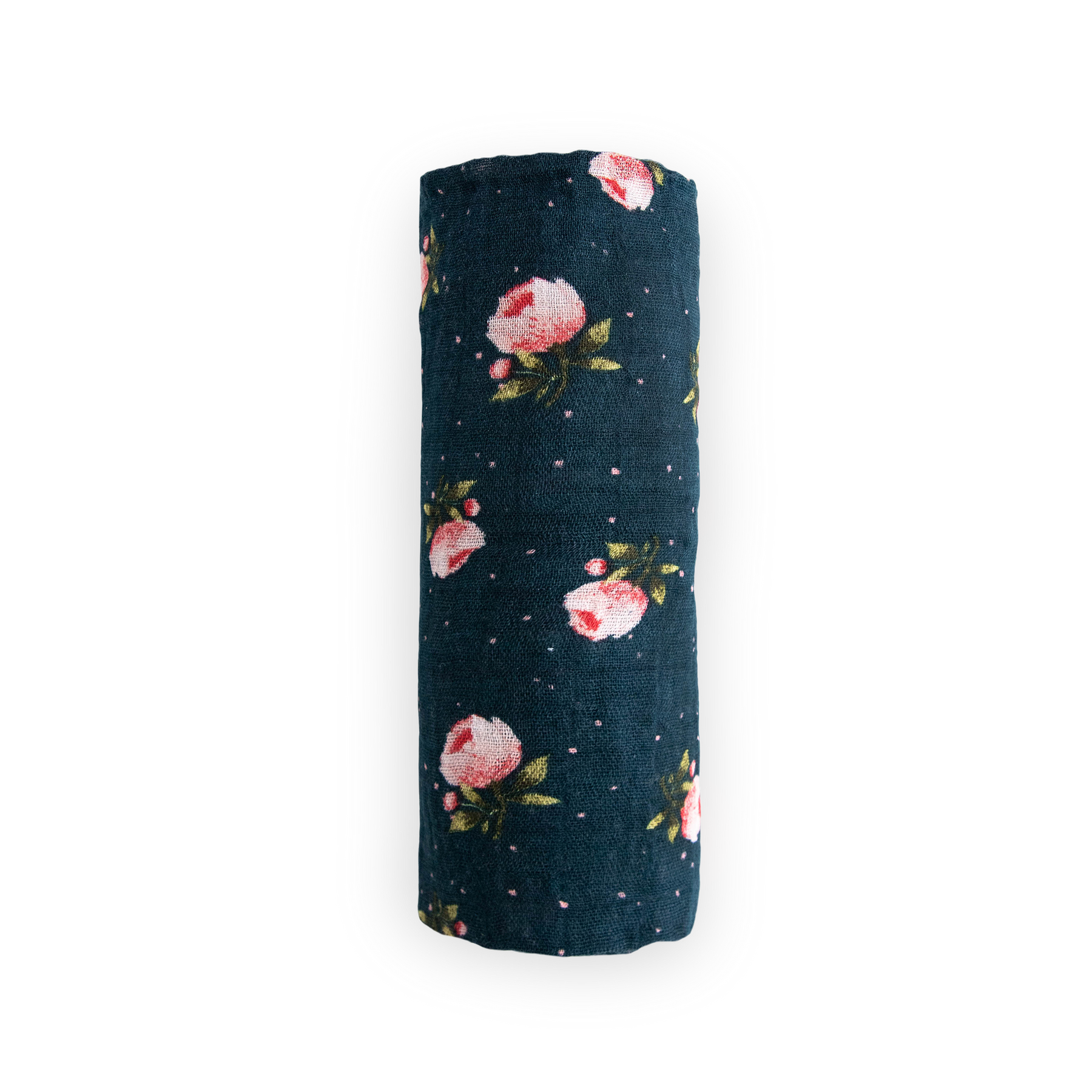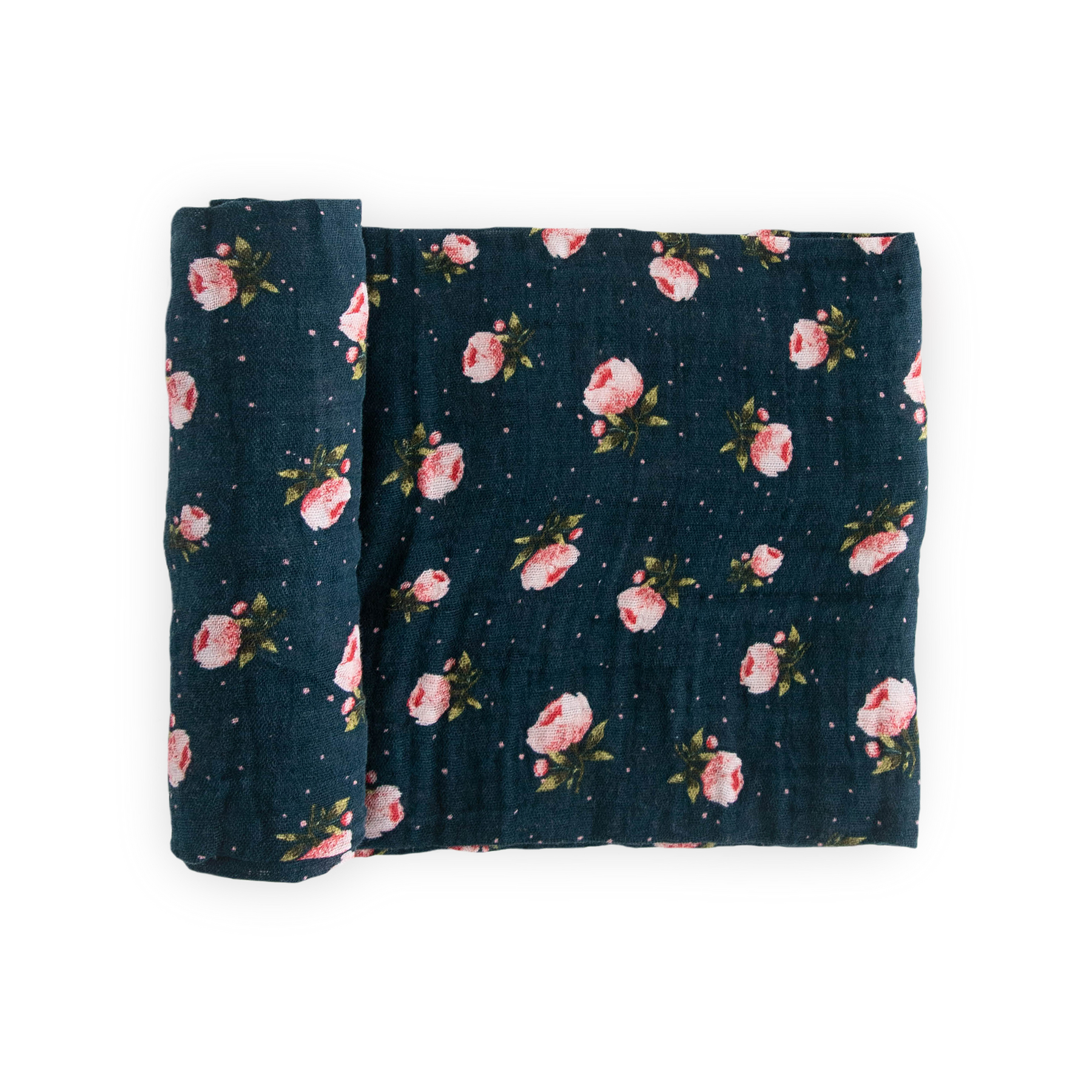 Little Unicorn Cotton Muslin Swaddle Blanket, Midnight Rose