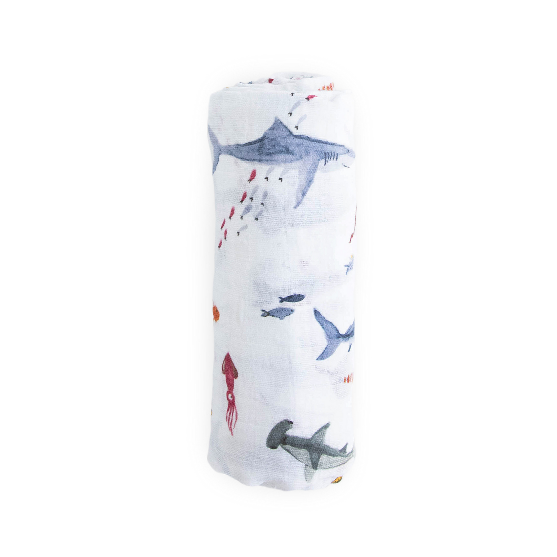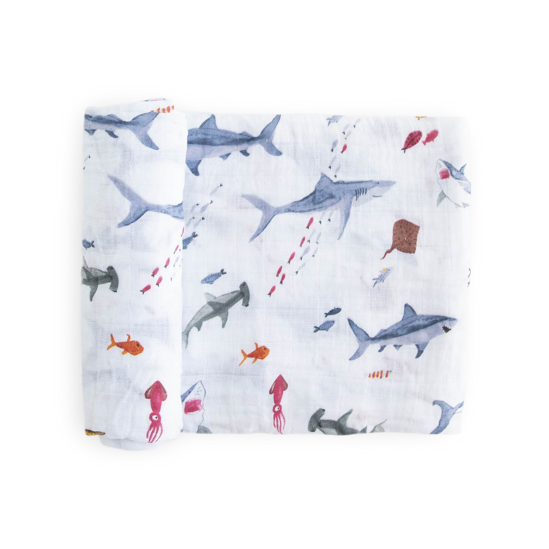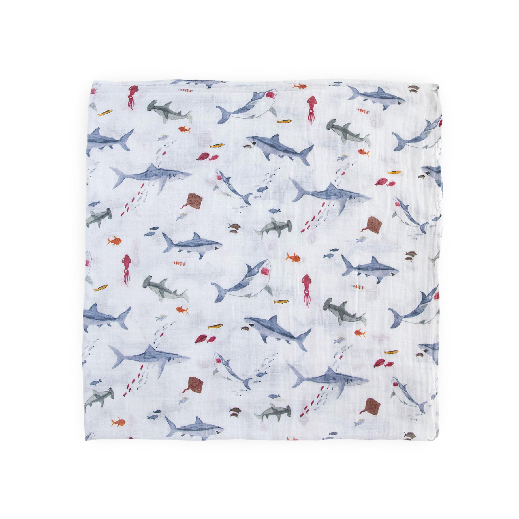 Little Unicorn Cotton Muslin Swaddle Blanket, Shark