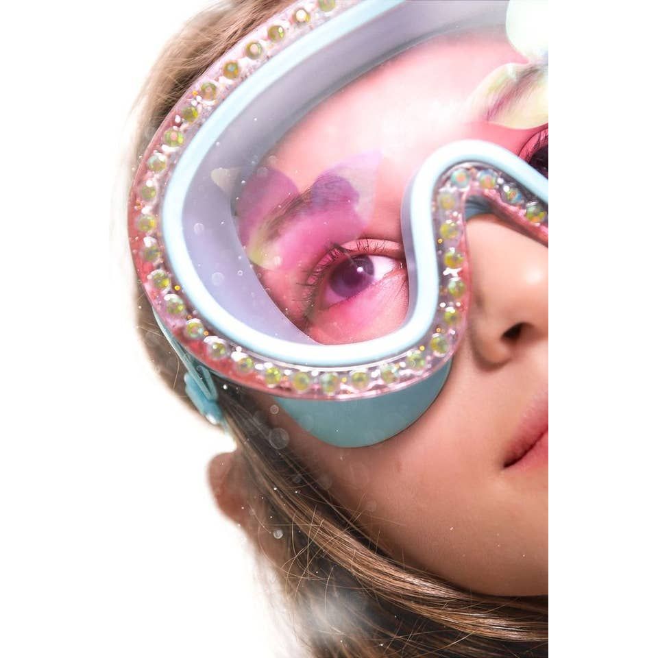 You will be shining brighter then the seas in Blue Sushi Sea Mask. This large frame swim mask will have you one with the tides featuring glitter shimmer through its frame, mermaid tails printed on the lens and if this is deep-sea perfection already Blue Sushi also has a mermaid tail embossed strap.