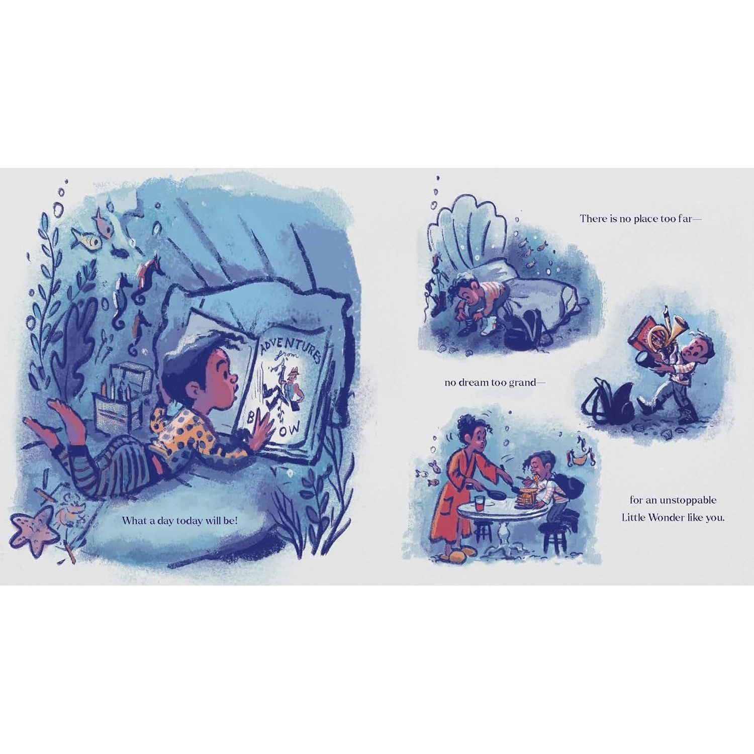 A love letter from a mother to her child accompanies him on a journey of unbelievable fantasies. It's a day full of breathtaking adventures, exciting twists and turns, and unexpected friends. With an imagination stronger than the tide and a mama's love deeper than the ocean, Little Wonder can do anything he believes he can.