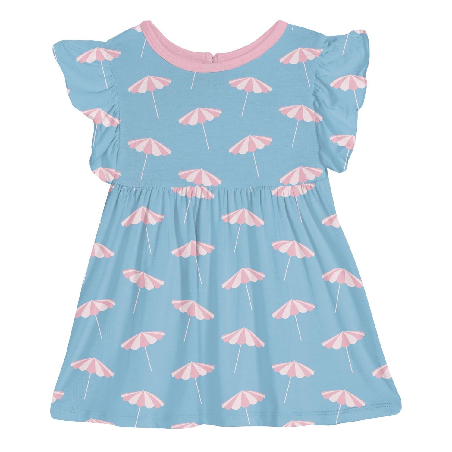 Kickee Pants Print Short Sleeve Lola Swing Dress, Seaside Blue Beach Umbrellas