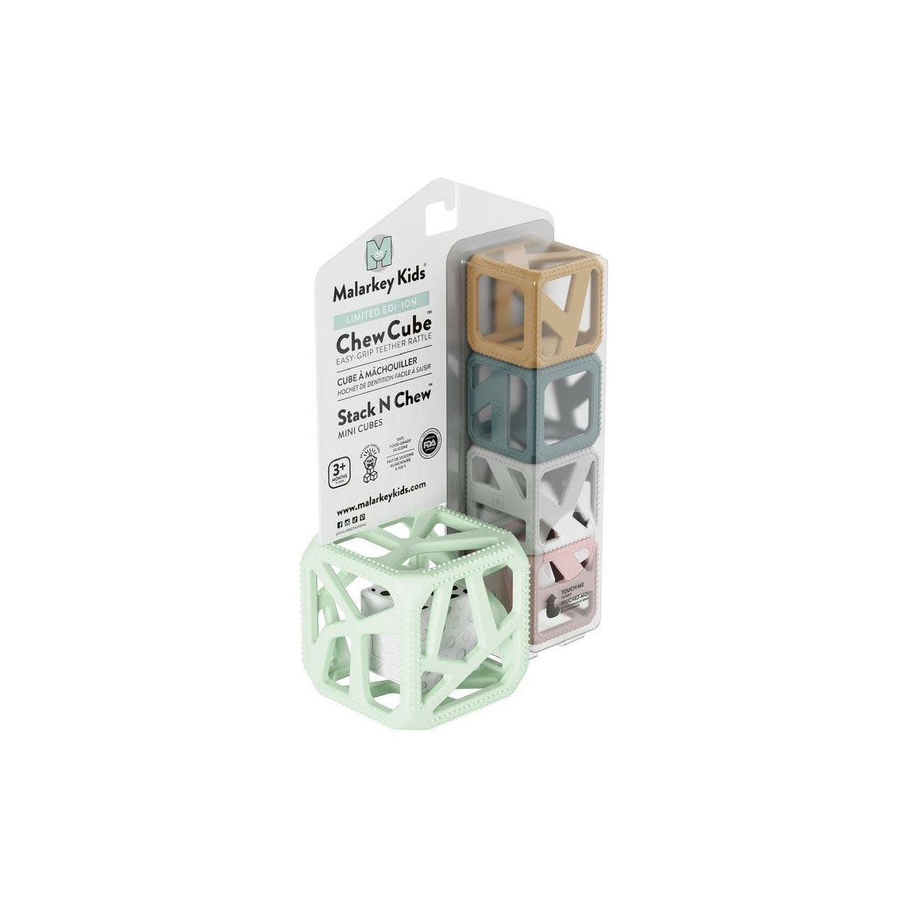 4 x Stack N Chew textured cubes made from food-grade silicone.