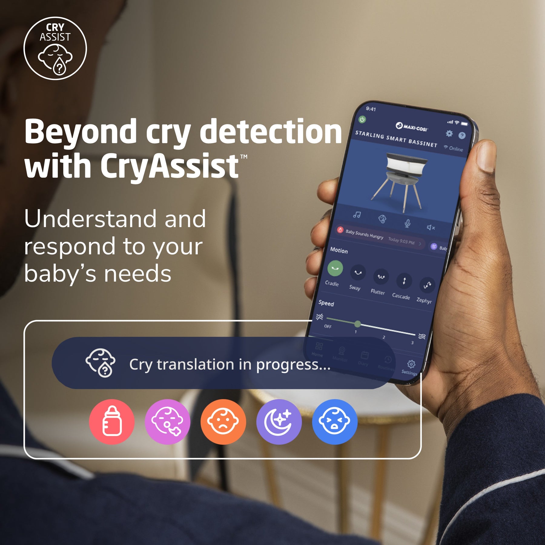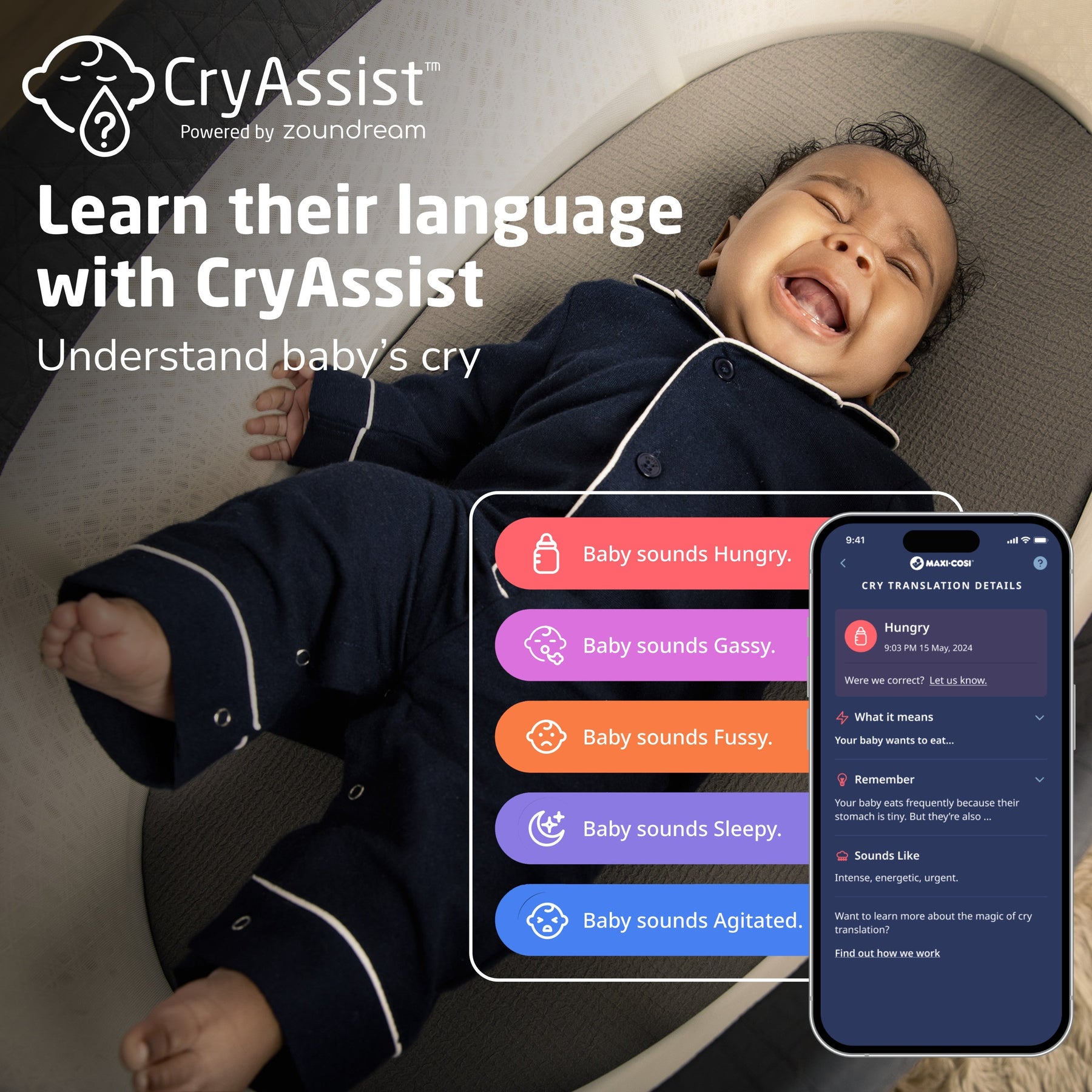 • CryAssist™ translates your little one’s cries with advanced AI so you’ll know if baby might be sleepy, fussy, gassy, agitated, or hungry (6 months of service included)
