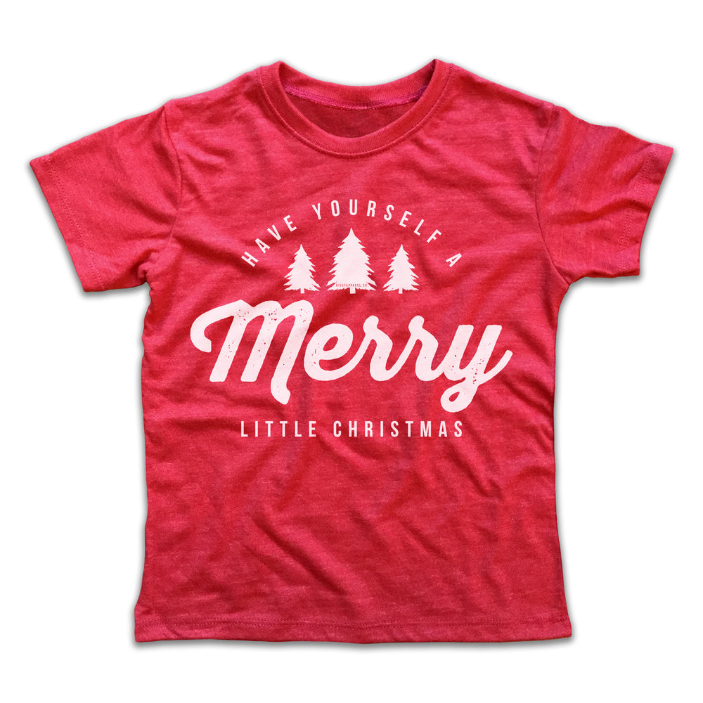 Merry Little Christmas Tee. Super soft blended tee (52% cotton / 48% polyester). Youth tees fit to the below sizes: